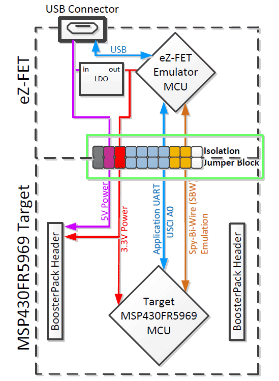 ez-FET diagram on MSP‑EXP430FR5969 kit: