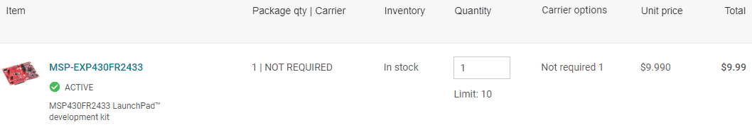 From TI: https://www.ti.com/product/MSP-EXP430FR2433/part-details/MSP-EXP430FR2433