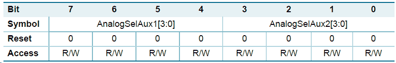 AnalogSelAux1[3:0]for the AUX1 outputAnalogSelAux2[3:0]for the AUX2 output