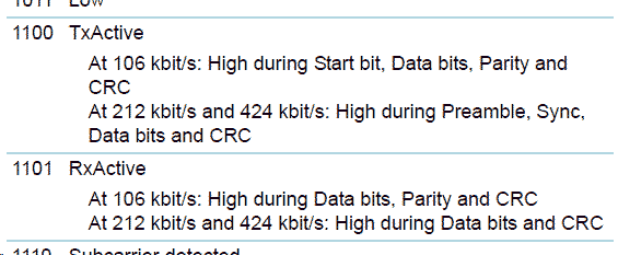 0b1100inAnalogSelAux1[3:0], TxActive on AUX10b1101inAnalogSelAux2[3:0], RxActive on AUX2